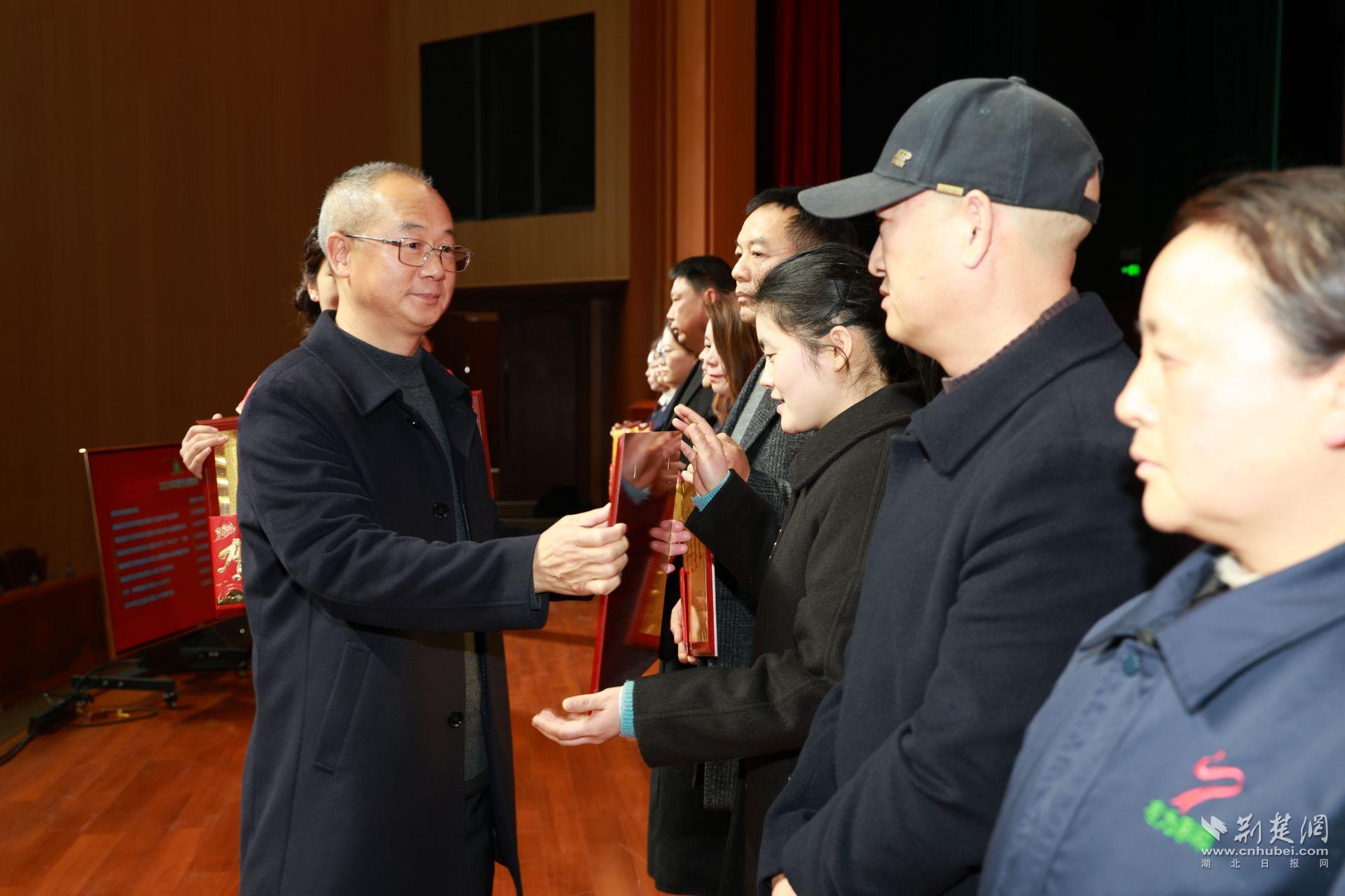 夷陵区委常委、龙泉镇党委书记秦玉龙出席会议并为“稻花香集团2025年度红旗单位”颁奖。龙泉镇党委副书记、镇长张春伟出席会议并讲话。
